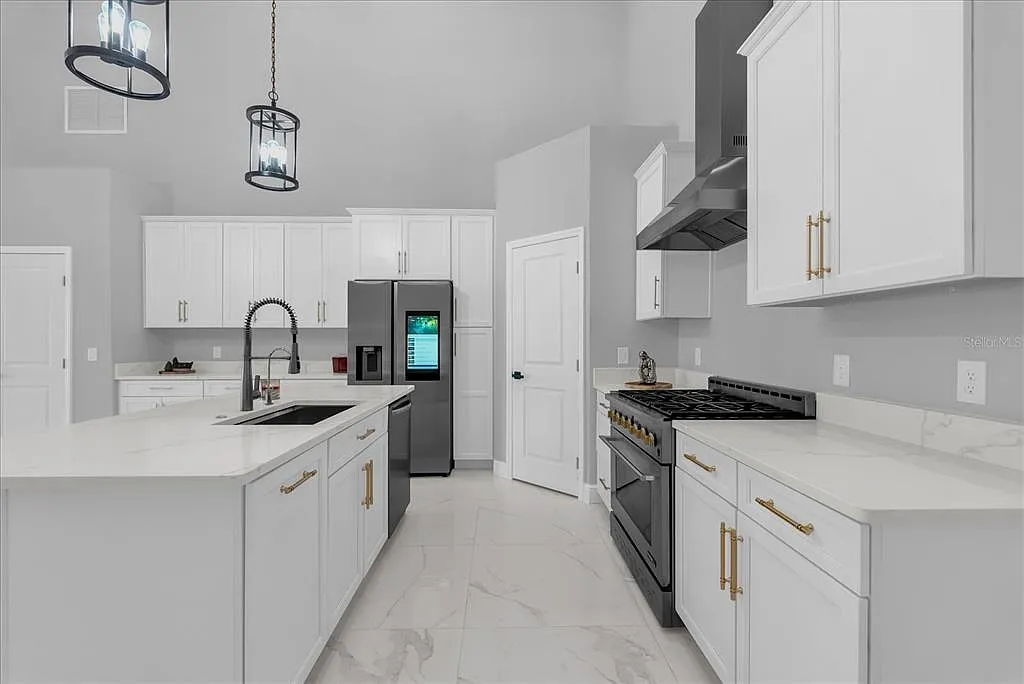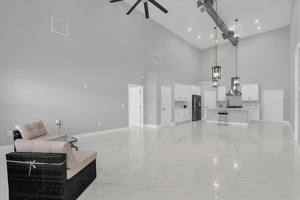 Luxury Barndominium (5000 sqft, 50’x100’) with three(3) Master bedrooms, Garage (3000 sqft) with NO-HOA on 2.5 Acres. Built in 2023, this custom-made barndominium offers refined modern living on 2.5 fully fenced acres, combining upscale finishes, open-concept design, and unmatched functionality. The home features 2,090 sq ft of living space with three(3) spacious Master bedrooms, ceilings fans in all rooms, each with a attached 3000 sqft garage with bathroom with an air-conditioned office (8x12ft). The kitchen and dining area are highlighted by a 19-foot high ceilings, upgraded California-style quartz countertops, 42 inch tall cabinets and a 36-inch gas range with six burners, ideal for both everyday living and entertaining. Porcelain tile flooring flows throughout the home, complemented by a two-door Samsung refrigerator, a reverse-osmosis system at the kitchen sink, gas water heater, gas dryer, water softener for the whole house with 3 layer filtration, 500-gallon propane tank and a car lift in garage. A true highlight of this property is the approximately 3,000 sq ft oversized garage, capable of accommodating up to 10 vehicles. The garage features are 16’ high walls, a 12’ x 12’ door, a Titan PREMIER Series 9,000-lb clear-floor 2-post lift, and an air-conditioned 8’ x 12’ office with a half bath, making it ideal for car collectors, hobbyists, or live-work use. Bring your RV, boat, toys, or business ideas. This one is built for flexibility, space, and modern comfort. Offering privacy, space, and modern luxury, this one-of-a-kind property delivers a rare opportunity to own a high-quality barndominium with both lifestyle appeal and exceptional versatility.