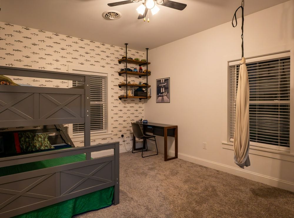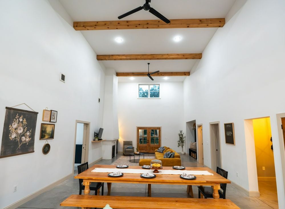 Tucked into the peaceful wooded landscape of Shippensburg, this one-of-a-kind black Barndominium offers the perfect balance of luxury, character, and tranquility. Situated on 11.6 private acres, this 5-bedroom, 3.5-bathroom 3600 sq ft. home invites you to live your dream life surrounded by nature with the soothing sounds of nearby streams and state game lands just across the street. From the moment you enter, you're greeted by the warmth of heated floors throughout, towering 19.5-foot ceilings, and exposed wood beams that crown the open-concept living, dining, and kitchen area. Natural light floods the space, enhanced by oversized windows that frame serene woodland views and bring the outdoors in. The custom-designed kitchen is truly the heart of the home, featuring a 5-foot marble island, a professional-grade gas chefs stove with a gold pot filler, and thoughtful details like two pull-out trash drawers, a microwave drawer, spice storage, and even a built-in charging station to keep electronics tucked away and organized. Each bedroom offers its own unique design touches and ample space, including three walk-in closets. The primary suite is a retreat of its own, blending comfort and charm effortlessly. Additional features include: