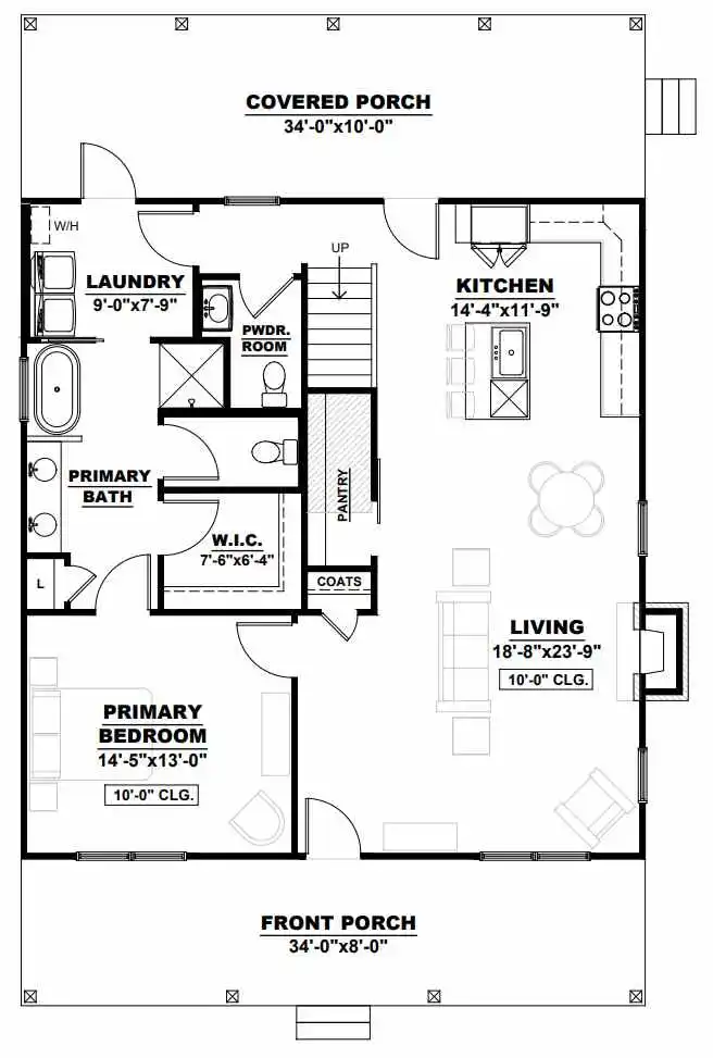 - One of the standout features of this house plan is its front and back porches. These outdoor spaces are perfect for enjoying the beautiful scenery around your home, hosting a barbecue with friends and family, or simply relaxing with a good book. With plenty of space, you can create an outdoor living area that is perfect for your needs.