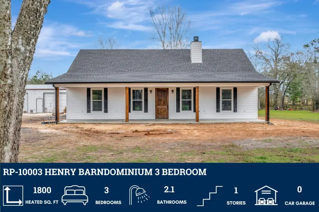 - Step into a world of rustic elegance with our 1862-square-foot barndominium. Two spacious bedrooms await, along with 2.1 bathrooms for your comfort.