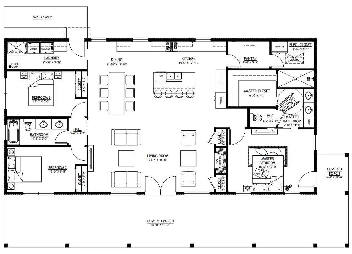 - This 1,800-square-foot layout stretches across a 30×60 footprint—designed for simple living with a spacious feel and smart spatial flow.
