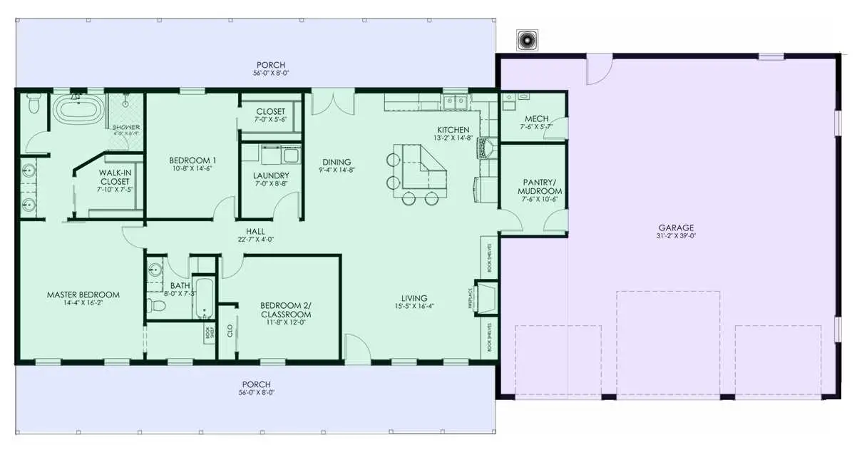 - A well-designed 1,800 square feet of heated living space offers cozy yet flexible comfort for multi-generational households.