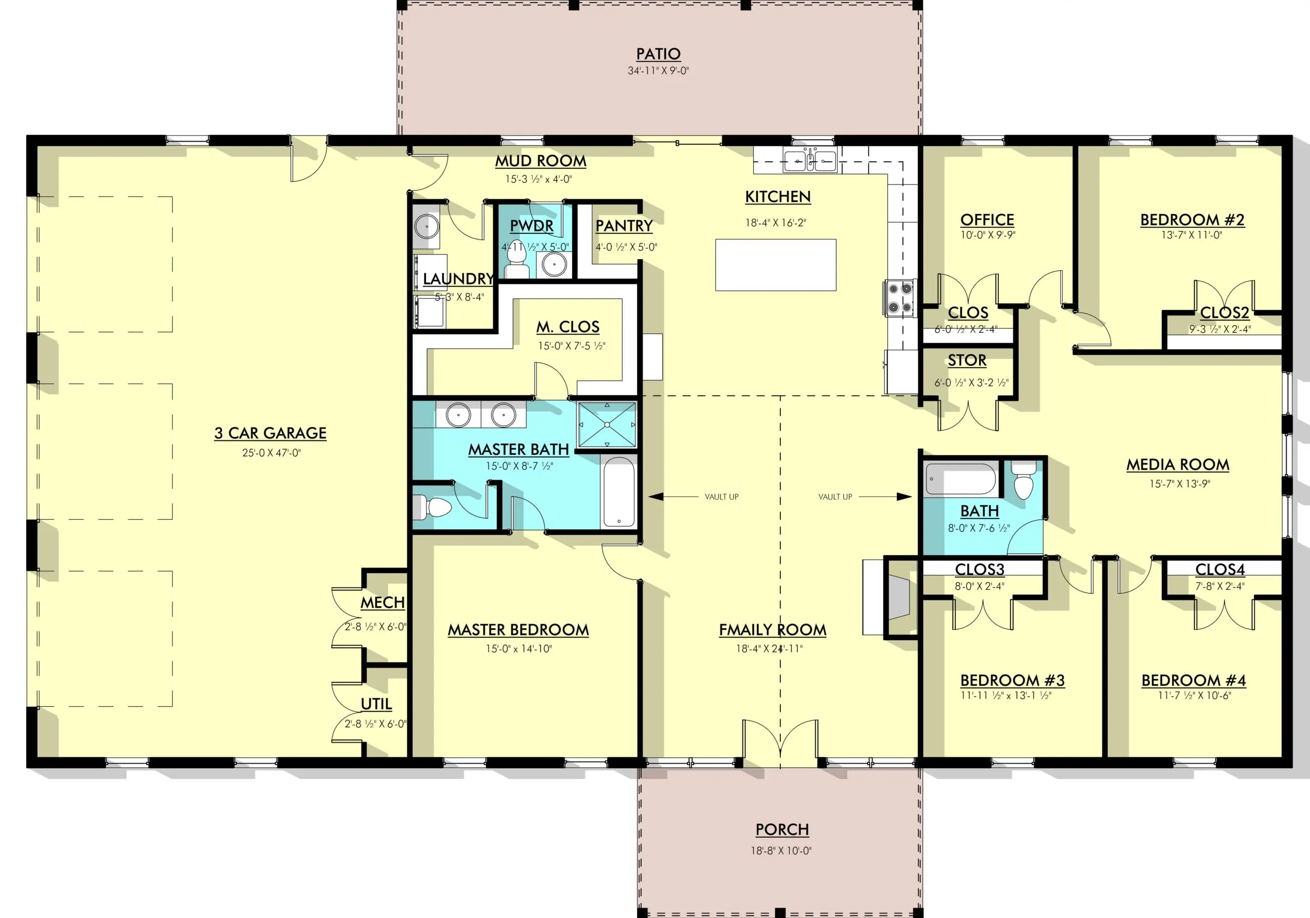 - Experience comfort, productivity, and entertainment all under one roof with this floor plan. This versatile floor plan features 4 bedrooms and 2.5 bathrooms! This design includes a dedicated office space for your work-from-home needs and a media room for entertainment.