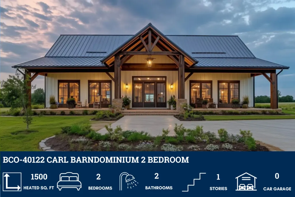 - This efficient two-bedroom barndominium floor plan maximizes space while maintaining a comfortable and open feel.