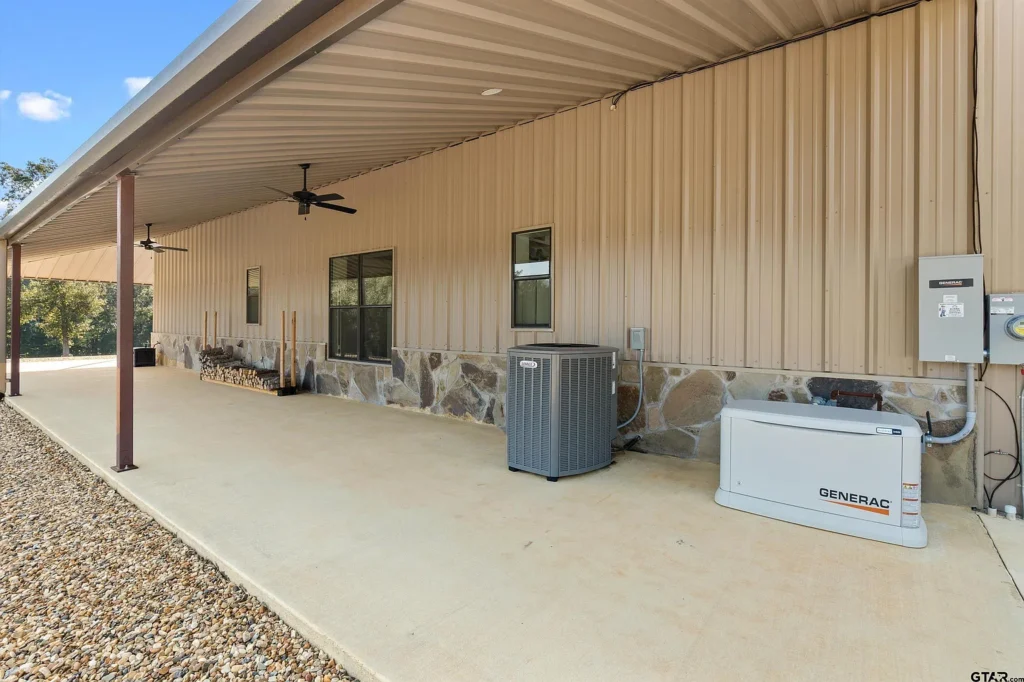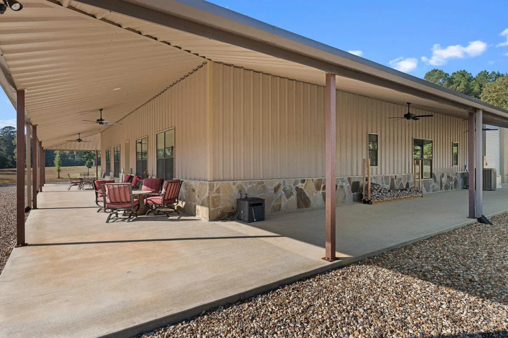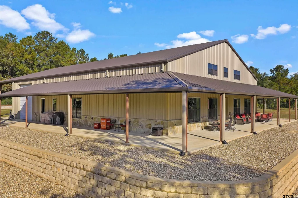 Set on 21 peaceful, fully fenced acres, this turn-key country retreat blends comfort, practicality, and wide-open space. A long concrete drive-way leads you past scenic views to an impressive barndominium that's been thoughtfully designed to both living and working. Expansive porches wrap around the home offering plenty of shaded space to enjoy the quiet surroundings, while the large shop, RV accommodations, greenhouse, and tractor shed make the property as functional as it is beautiful. Inside, the home welcomes you with a spacious great-room layout ideal for gathering-where the kitchen, dining, and living areas flow together under tall ceilings and warm recessed lighting. A dedicated office, generous pantry spaces, and a well appointed utility room make every day living easy, and the three bedroom, three bathroom design offers privacy for family or guest. Quality finishes run through out, from granite surfaces to 3' wide interior doors, and thoughtful touches like a built-in gun safe and included appliances add to the move-in ready feel. Reliable systems, including a 24KW Generac whole-home generator, 1000 gallon in ground propane, foam insulation, and an aerobic system-provide peace of mind, while the massive workshop, 1200' covered RV bay with 50 amp plug and sewer connections, and extensive storage open the door to countless possibilities. Whether you're looking for a quite homestead, a place to work on projects, or a weekend escape with room to roam, this property delivers space, comfort and freedom in a setting that feels miles away from it all! Additional equipment-including a tractor and ATV-may be available for purchase separately. See docs for a list of all the amazing details of this property. PROPERTY HIGHLIGHTS • Total slab over 8,200 sq ft • 3,000 sq ft living/storage • 1,800 sq ft shop/garage • 1,200 sq ft covered RV bay • Butler’s pantry + walk-in pantry • 10’ ceilings & recessed lighting • Commercial refrigerator & freezer in shop nego