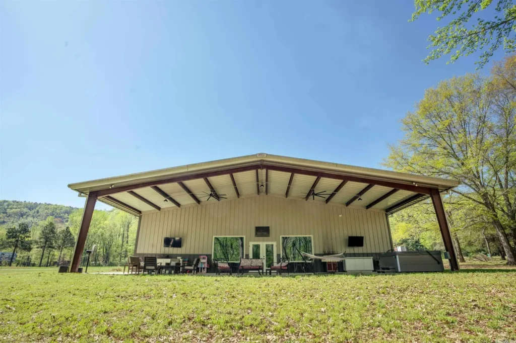 Barndominium at its best! This 6000 square foot dwelling sits on 4.19 acres, offers two separate living areas with a heated and cooled shop space in between. Insulated, framed interior walls with a 24″ air gap insure a very energy efficient home. This property offers high quality craftsmanship throughout, exceptional cabinetry, chefs kitchen, spacious walk-in closets, massive living area with vaulted ceilings and open concept to the kitchen. The 2100 square foot shop area features two automatic garage doors on each side allowing for easy pass through access for your boat and trailer or outdoor toys! The main living space is approximately 3000 sq feet, 2 bedroom, 2.5 bath with office or optional 3rd bedroom. The apartment space is a 2 bedroom, 1.5 bath with full kitchen. Step out onto the 20×60 covered porch/outdoor entertainment area from the living room and enjoy the night in your hot tub! Conveniently located just off of Hwy 337, within 3 miles of Lobo Landing on the Little Red River and 6 miles to Dam Site Recreational Area on Greers Ferry Lake. This is a must see property!