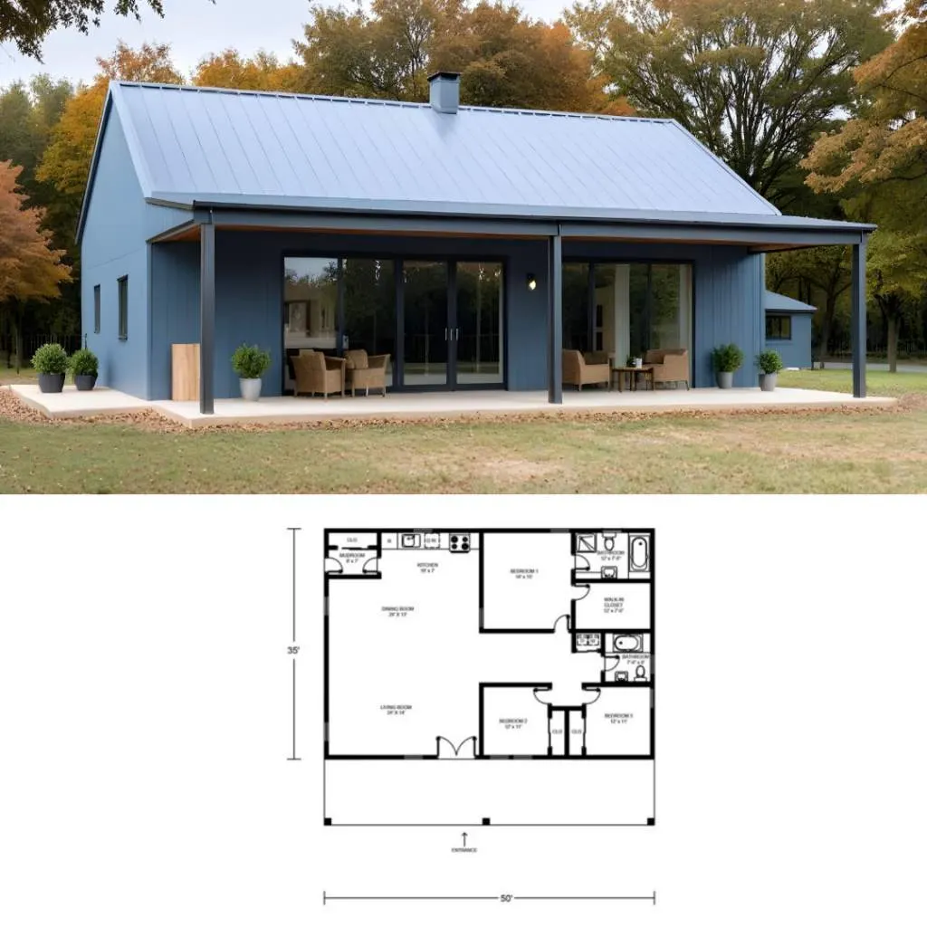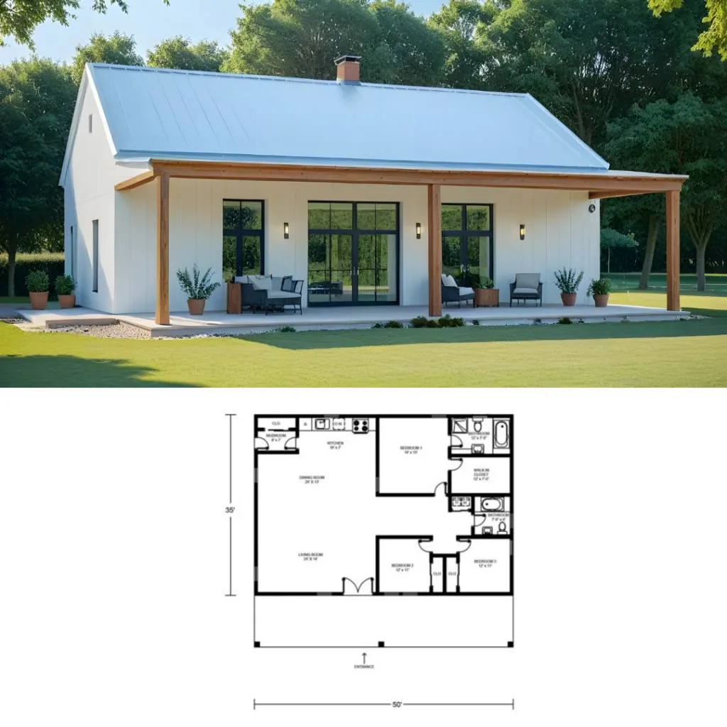 - Offering three bedrooms and two bathrooms, this design provides comfortable single-level living.