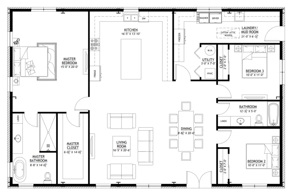 For more barndominium floor plans, check out our complete collection of 3-bedroom barndominium floor plans.
