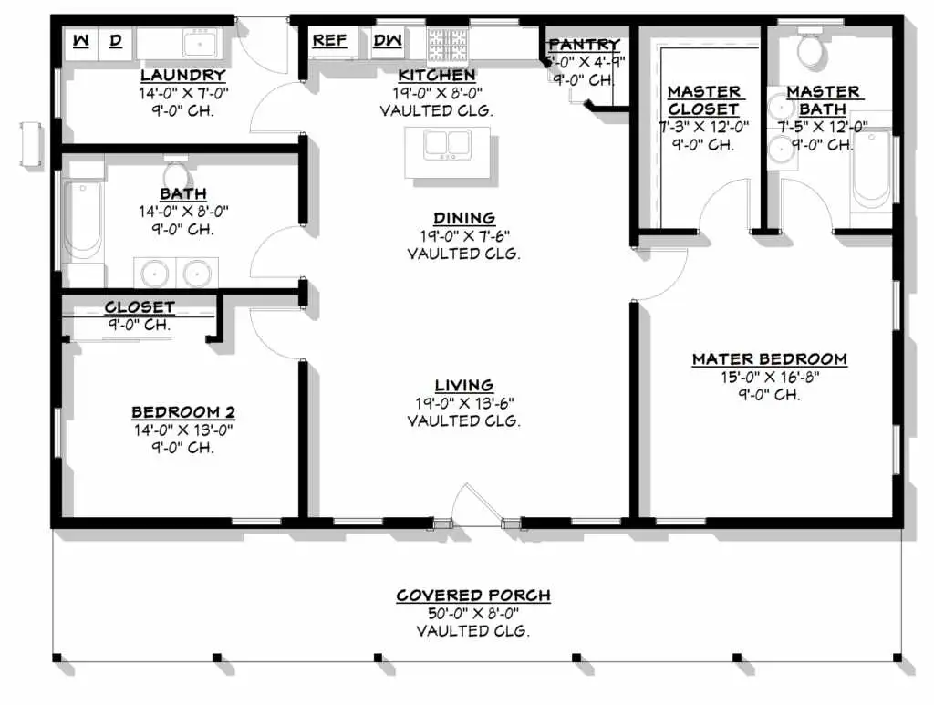 For more barndominium floor plans, check out our complete collection of 2-bedroom barndominium floor plans.