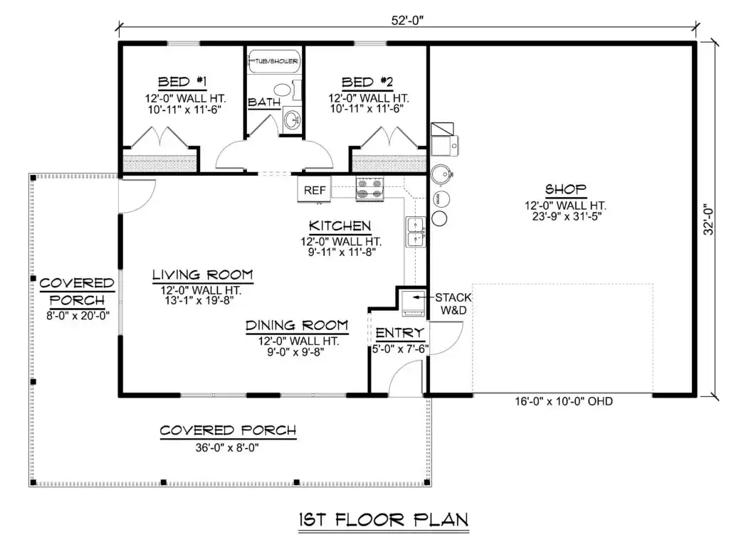 For more barndominium floor plans, check out our complete collection of 2-bedroom barndominium floor plans.