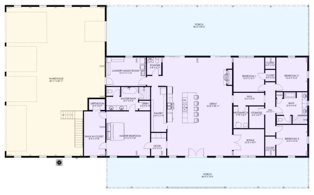For more barndominium floor plans, check out our complete collection of 4-bedroom barndominium floor plans.