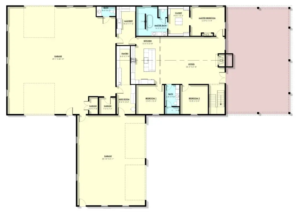 For more barndominium floor plans, check out our complete collection of 3 bedroom barndominium floor plans.