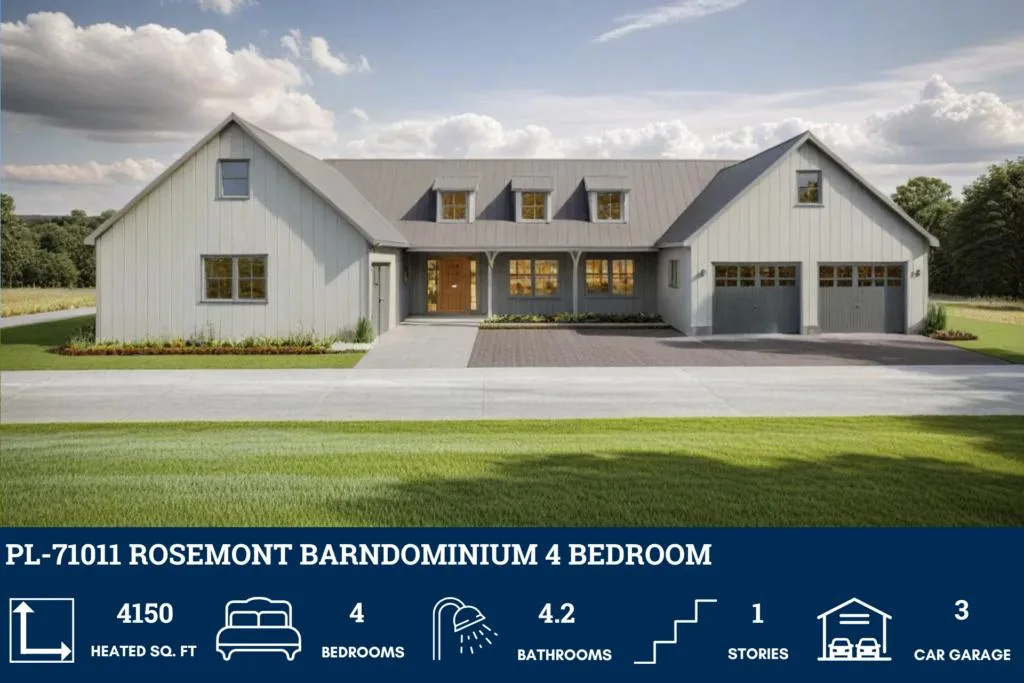 For more barndominium floor plans, check out our complete collection of 4-bedroom barndominium floor plans.