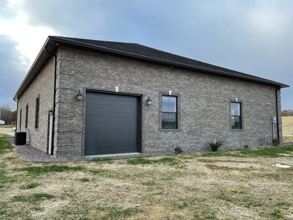 To the right of the entryway, you have three shop doors. These doors allow you to have easy access to the shop as well as the ease of pulling in and out larger equipment or even motor vehicles. The black color of the doors matches the roof perfectly, making the exterior of this shome really all come together well.