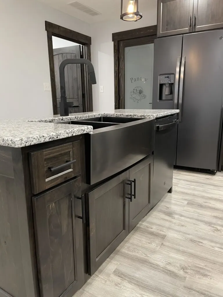 The deep sink is great for washing those larger pots that don’t fit in your dishwasher or may need to be washed by hand. The light fixture hanging directly over it gives you more visibility when washing dishes, which can sometimes be an issue if there isn’t enough lighting or shadows exist where more light is needed in the kitchen. That can be really frustrating, but that won’t be an issue in this home with this light directly over your sink.