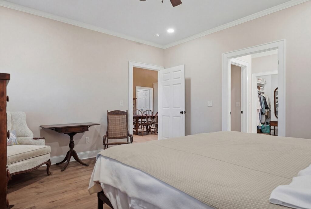 The private quarters of this barndominium are designed as distinct sanctuaries, blending traditional heirloom aesthetics with modern functionality to accommodate a large family or multi-generational living.
