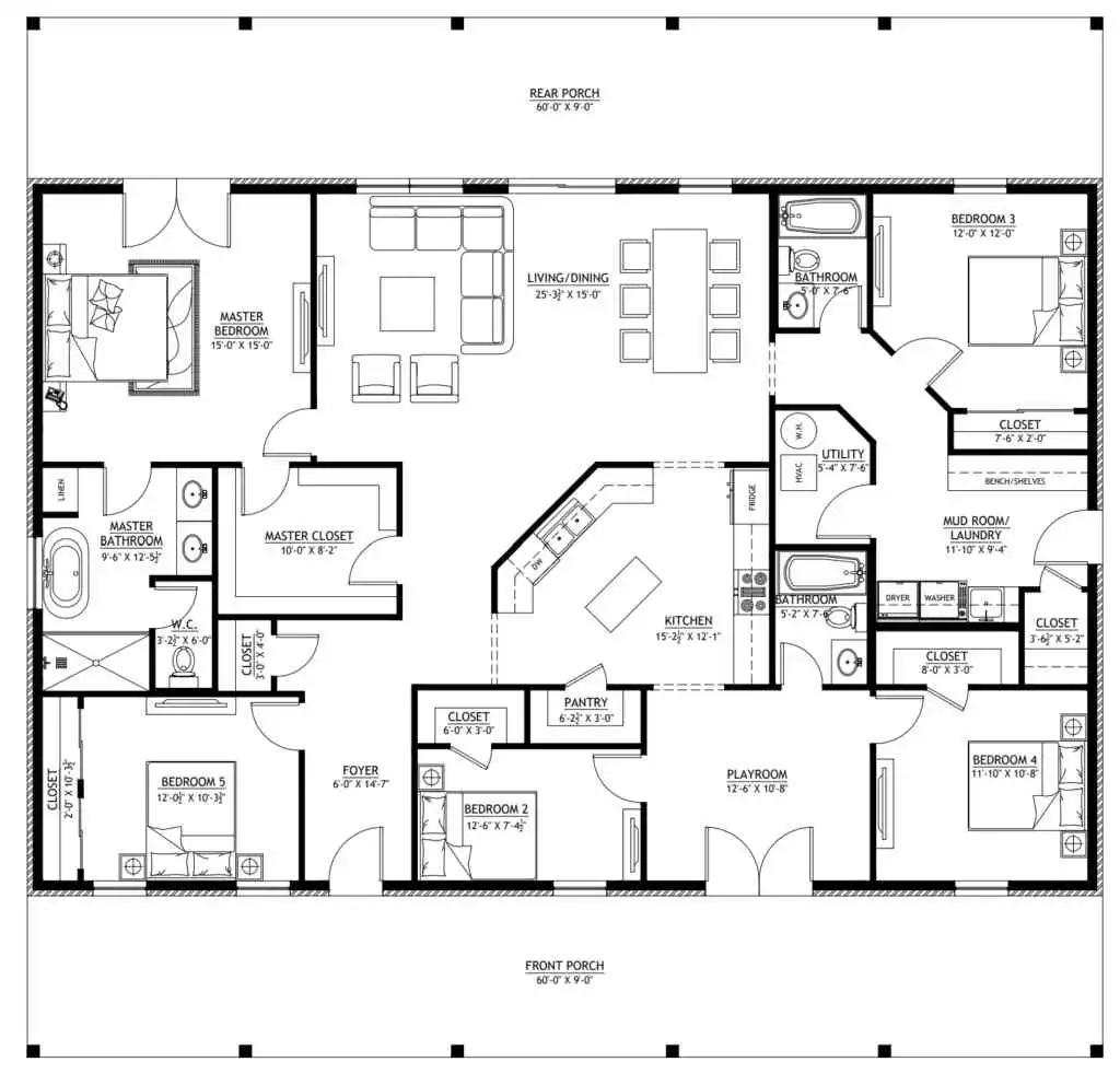 For more barndominium floor plans, check out our complete collection of 5 bedroom barndominium floor plans.