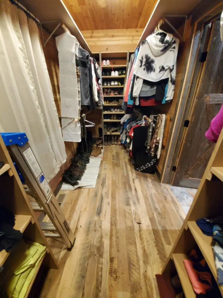 A walk-in closet off of the master bedroom provides plenty of space for clothes, shoes, and other assorted storage.