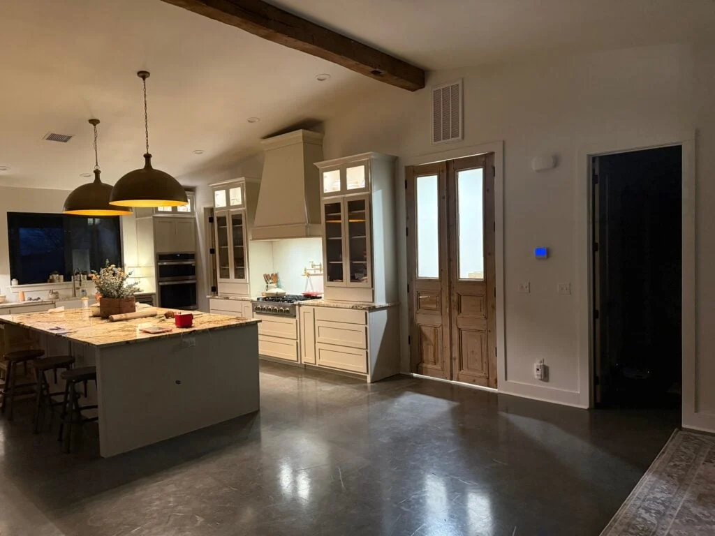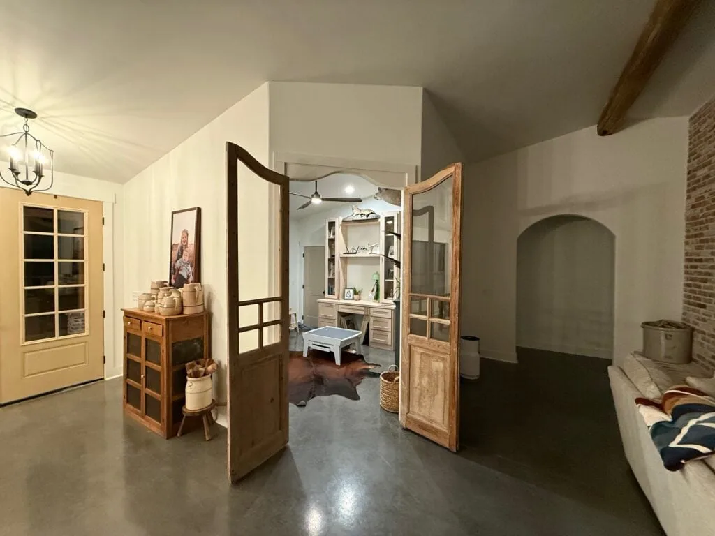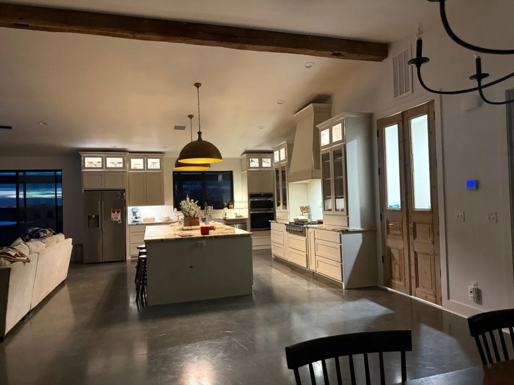 The interior of this Oklahoma build offers a beautiful contrast to its rugged exterior, favoring a bright, open-concept layout that feels both grand and cozy.