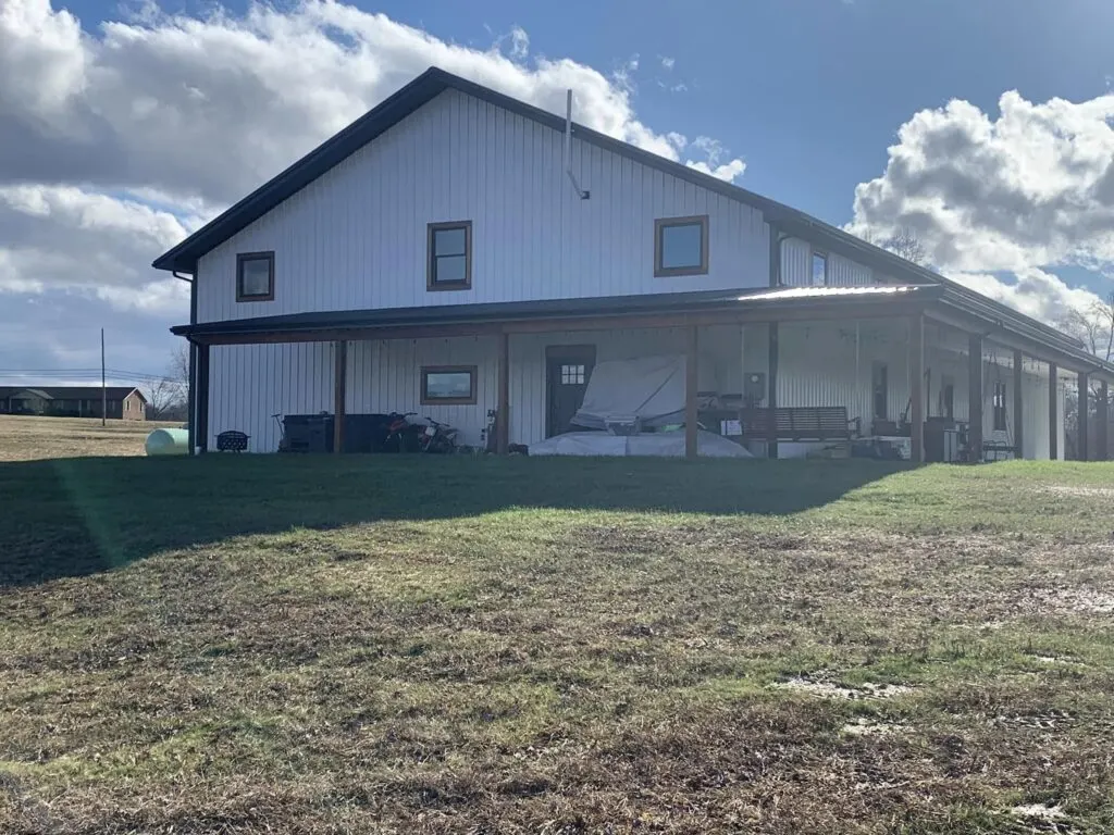 You can’t get any more rustic than this stunning Southern Ohio barndominium. The home is crowned with a large black gable roof, giving the structure a commanding presence. Meanwhile, the all-white barndominium metal siding contrasts beautifully with the roof, resulting in a clean, classic look.