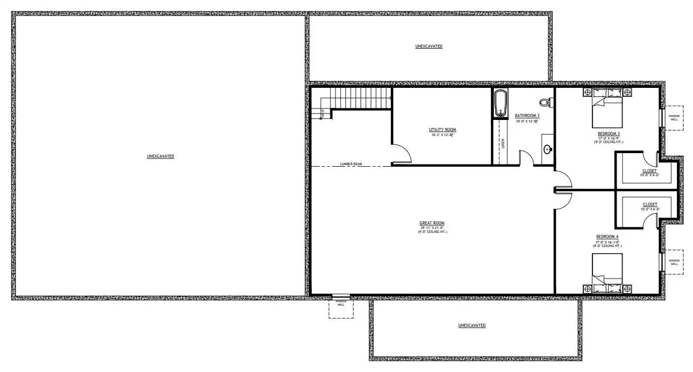 4 Bedroom 40×100 Barndominium Example 1 – PL-62501